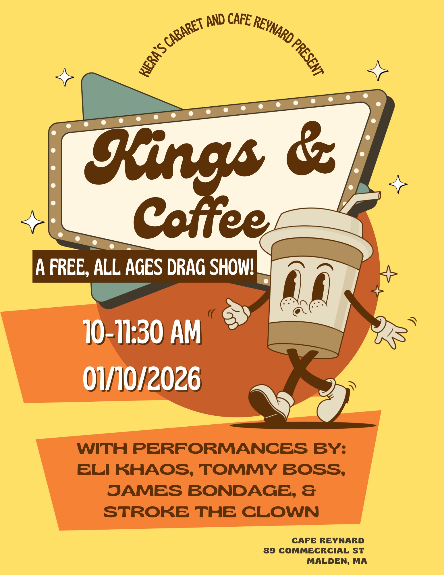 Come see us on Saturday the 10th, when we're visited by royalty! Kings & Coffee brings some much needed camp to the new year.